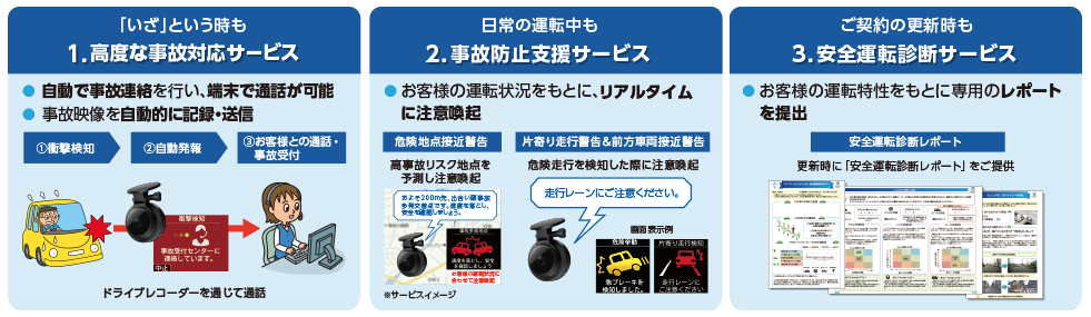 保険会社が提供する通信機能付きオリジナルドライブレコーダによるサービス。